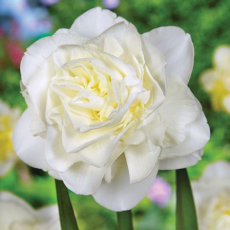 Narcisa cu flori duble care se caracterizeaza prin flori mari, de un alb-fildes, asezate pe tulpini extrem de rezistente.